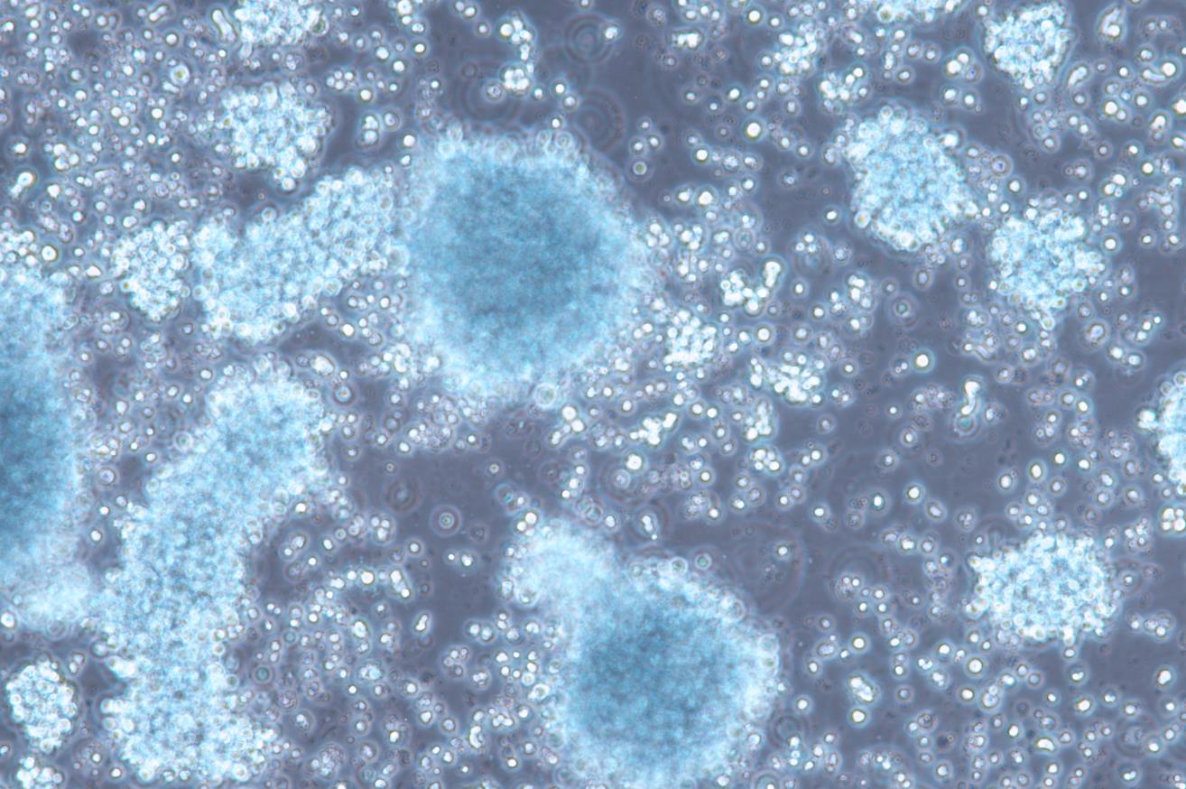 NK-92是從一位患有急進性非霍奇金淋巴瘤的50歲白人男性外周血單核細胞衍生來的一株白細胞介素-2依賴型NK細胞株。這株細胞對很多惡性細胞有細胞毒性;鉻釋放試驗顯示它能殺死K562和Daudi細胞。NK-92細胞(經過照射以防止增殖)可以有效地用于血液中白血病的體外免疫清掃而不危及血細胞的功能。NK-92細胞有以下特征: CD2, CD7, CD11a, CD28, CD45, CD54表面標記陽性,CD56亮;CD1, CD3, CD4, CD5, CD8, CD10, CD14, CD16, CD19, CD20, CD23, CD34和HLA-DR表面標記陰性。 |